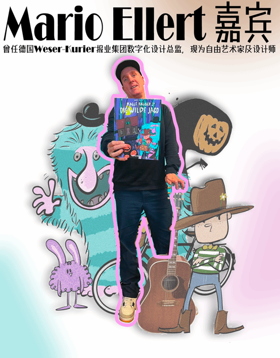 Mario Ellert先生拥有丰富的设计实践,其曾担任德国历史悠久的不来梅Weser-Kurier Digital平面与网页设计总监,主导设计团队数字化转型工作,2020年起任职于artundweise GmbH并担任艺术总监,长期深耕视觉设计、动画创作及创意团队管理领域。